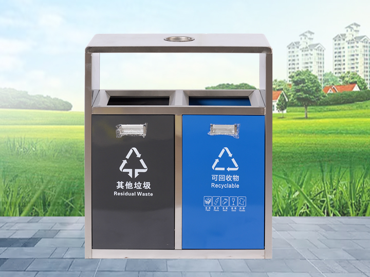 二分類果皮箱-藍灰拼色不銹鋼